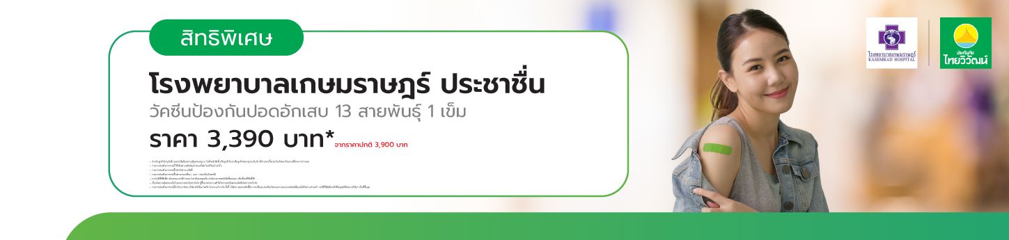 ○ ส่วนลดค่าวัคซีนป้องกันปอดอักเสบ 13 สายพันธุ์ 1 เข็ม จากปกติมูลค่า 3,900 บาท เหลือเพียง 3,390 บาท