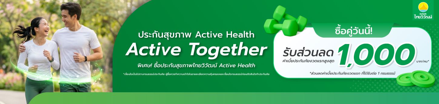 รายการส่งเสริมการขายนี้ใช้ สำหรับลูกค้าที่ซื้อประกันสุขภาพ Thaivivat Active Health