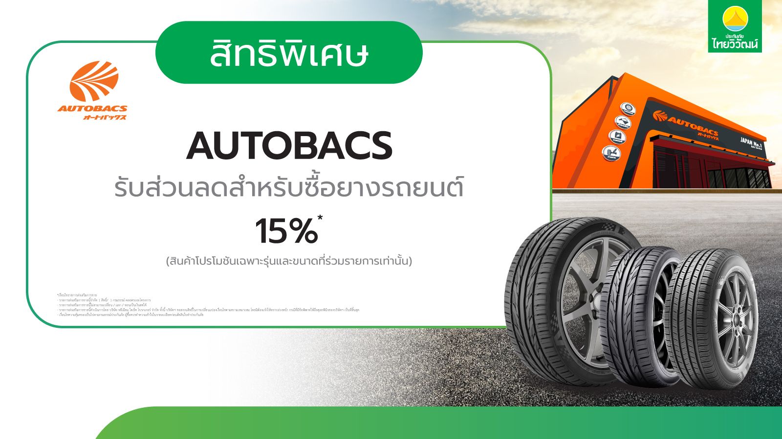 ○ นำรหัสส่วนลดที่ได้รับ แสดงต่อหน้าเจ้าหน้าที่ Autobacs เพื่อรับสิทธิ์ส่วนลด 15% สำหรับซื้อยางรถยนต์ (เฉพาะยี่ห้อ Bridgestone และ Yokohama เท่านั้น) จากราคาปกติ พร้อมรับบริการฟรี อบโอโซน ที่ Autobacs ทุกสาขา