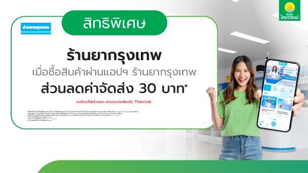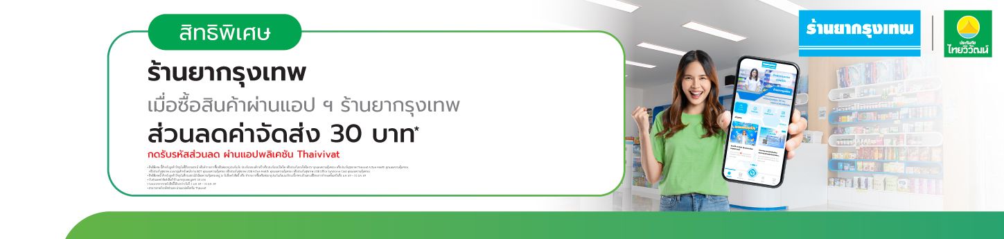 • รับส่วนลดค่าจัดส่งสินค้าร้านยากรุงเทพ มูลค่า 30 บาท