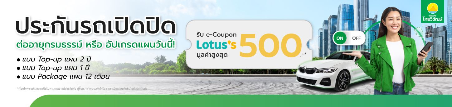 ประกันรถเปิดปิด แผนเดิม | ต่ออายุและอัปเกรดแผนประกันรถเปิดปิด แผนใหม่ | รับ e-Coupon Lotus’s |