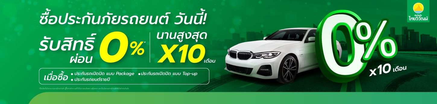 | กรมธรรม์ประกันรถเปิดปิด สำหรับรถยนต์ทั่วไป และสำหรับรถยนต์ไฟฟ้า (EV) | แผน | ระยะเวลาผ่อนชำระ 0% |